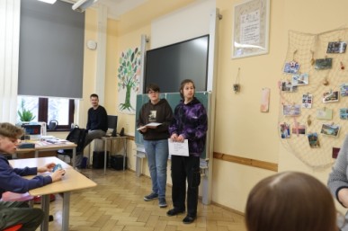 Einer schönen Schultradition folgend ging auch in diesem Jahr die Schulleitung zur Ausgabe der Halbjahresinformationen durch alle Klassen. Wettbewerbsurkunden wollten verteilt werden und unser Förderverein unterstützte dies mit kleinen Preisen. Frau Lutz zeichnete die Klassen im Wettbewerb "Schönstes Klassenzimmer" aus. Über die Pizzalieferungen freuten sich die 9a und 8a. Herr Martens übergab die Zertifikate an die ausgebildeten Medienscouts und Herr Dreyer kam wie gewohnt mit den Urkunden zur Schulstufe vom Sächsischen Informatikwettbewerb. Dazu kamen noch individuelle Bemerkungen zu den Klassen und an alle der Wunsch für schöne, erholsame Ferientage.