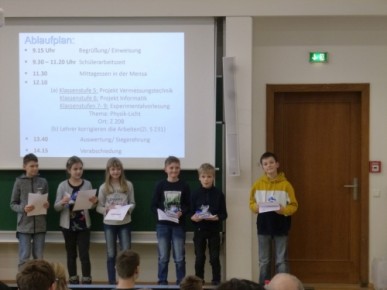 Um 8:45 Uhr wurden alle Teilnehmer von den Organisatoren (Fachberater und Professoren der Hochschule) begrüßt und durften sich knapp zwei Stunden an verschiedenen mathematischen Knobeleien probieren. Im Hintergrund korrigierten die Lehrer die Aufgaben, sobald die Schüler mit denen fertig waren.