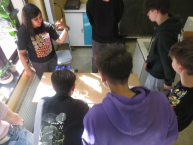 Bei der Anwendung von Restriktionsenzymen als Voraussetzung der DNA-Sequenzierung durften unsere Schüler selbst Hand anlegen. Da in der Wissenschaftssprache Englisch gesprochen wurde, wurde „nebenbei“ Englisch geübt. Gut gemacht, liebe 9a,b!